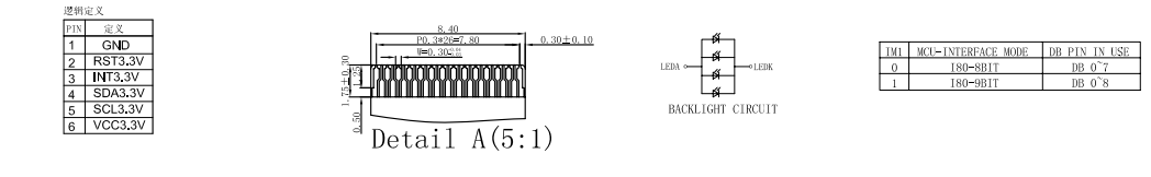 Production PINS Definition of the 2.8 inch 240x320 LCD Touch screen
