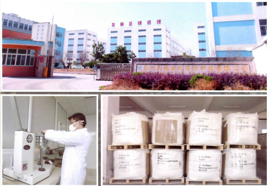 Suzhou Wuyue Synthetic Fire Sci-tech Co., Ltd.,(the original company name Suzhou Wuyue Synthetic Chemical Factory) is established in November 1985, which is a professional large manufacturer of dry powder extinguishing agents. WUYUE is located in the center of the Yangtze River Delta Suzhou city, and close to Shanghai. WUYUE enjoys an excellent geographical position and transportation. We are focus on talent instruction & technological development, now has 120 employees including 30 R&D personnel, and invested 100millions to set a 40,000 square meters modernization own plant and production lines in 2011.