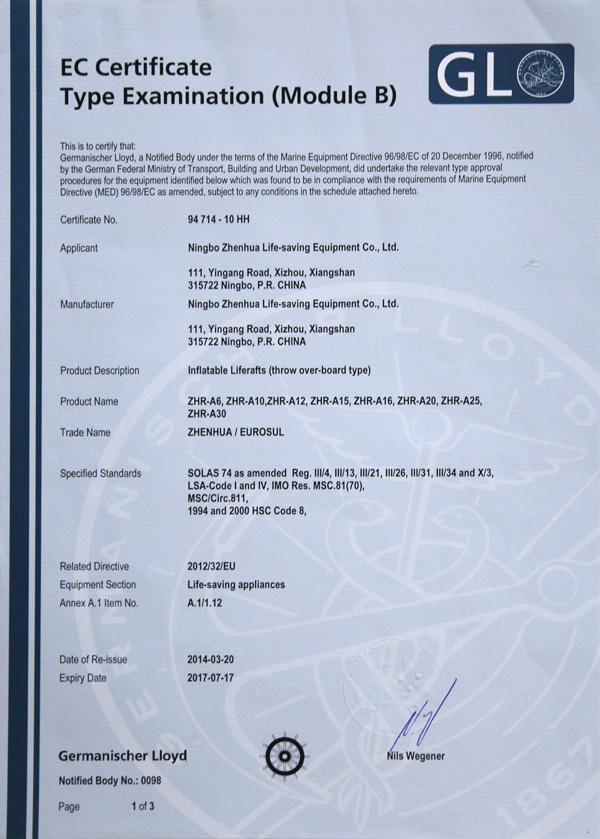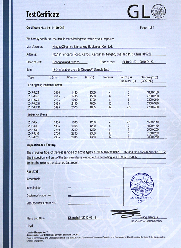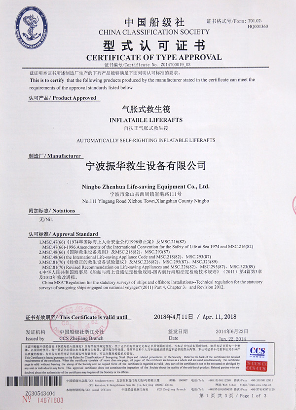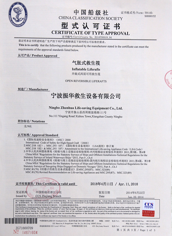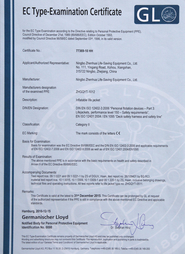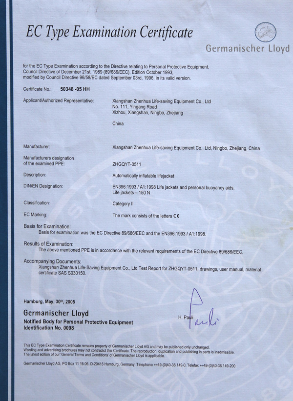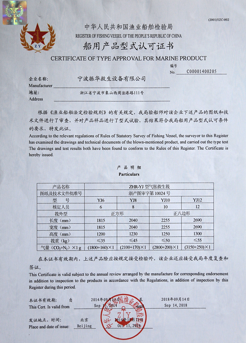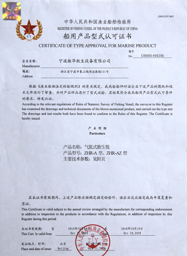 The company has a complete ISO9001 production management system, marine life-saving fireworks signal products, inflatable life jacket series products; strictly in accordance with GB4541-4543-91 standards and SOLAS, LSA and MSC.81 (70) and other international standards for production, products Approved by CCS of China Classification Society and Fishery Ship Inspection Bureau of the Ministry of Agriculture, and passed the CE certification and Australian certification of Lloyd's Register of Shipping, the product has obtained a number of utility model patents.