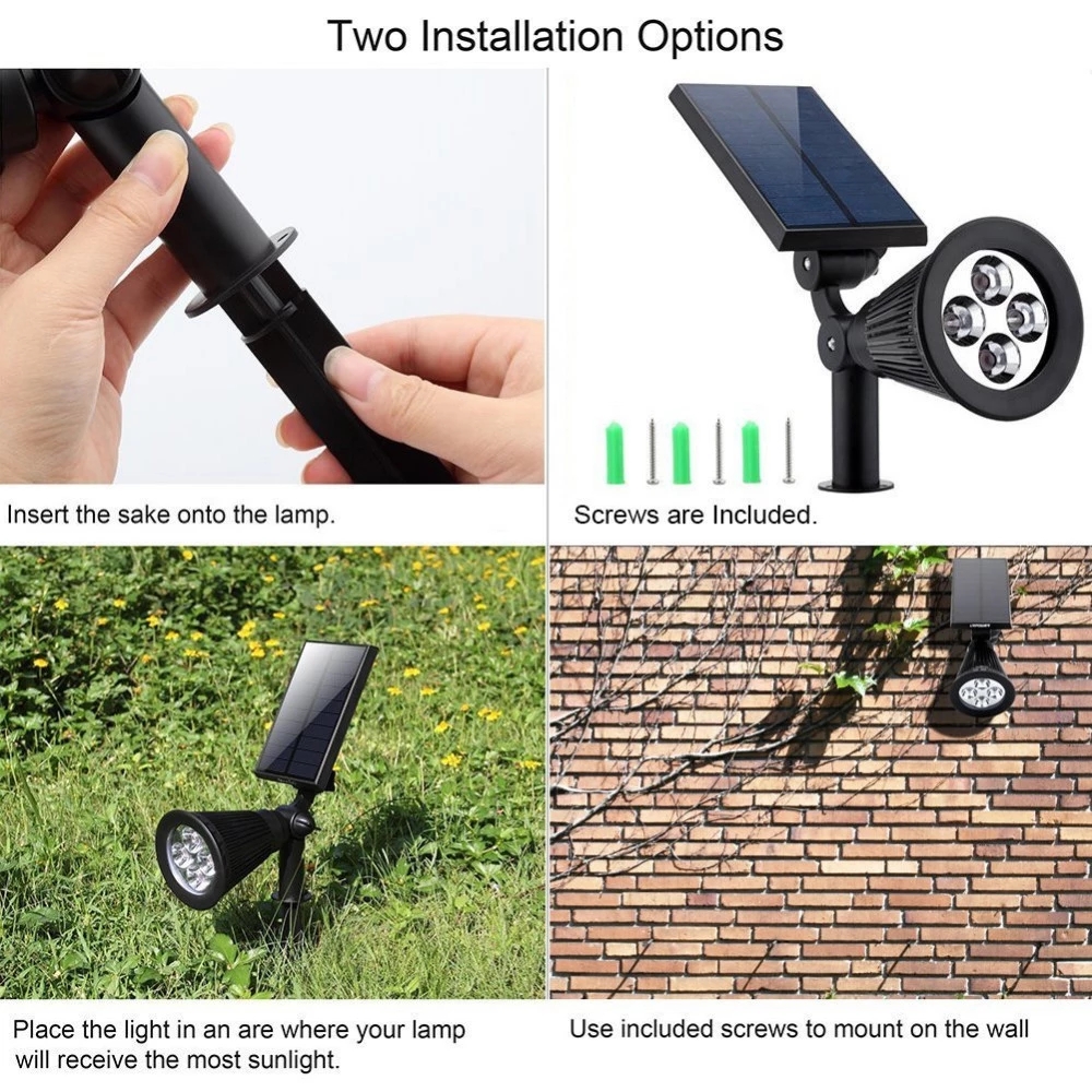 1. Upgraded Solar Outdoor Spotlights: Waterproof (IP65), Heatproof and Super Bright - 200 Lumen output, 4 x 50 Lumen enhanced LED